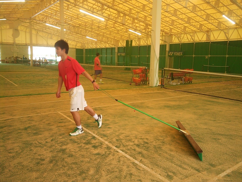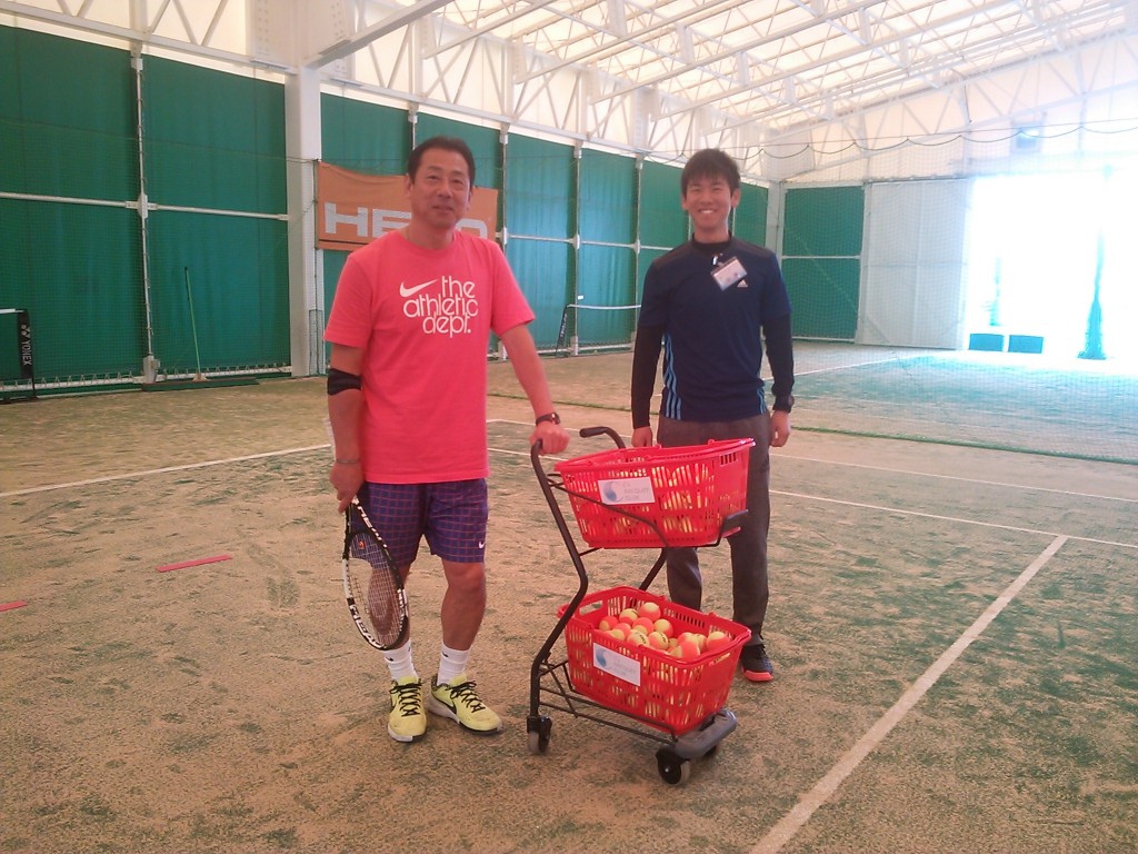 尾藤コーチとお揃いのヨネックスのニューモデルです。ちなみの私の(右)はオールコート用ですが。