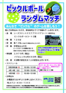 3月20日(金・祝)レッドボール男女混合シングルス大会