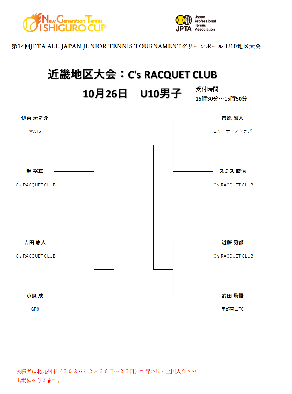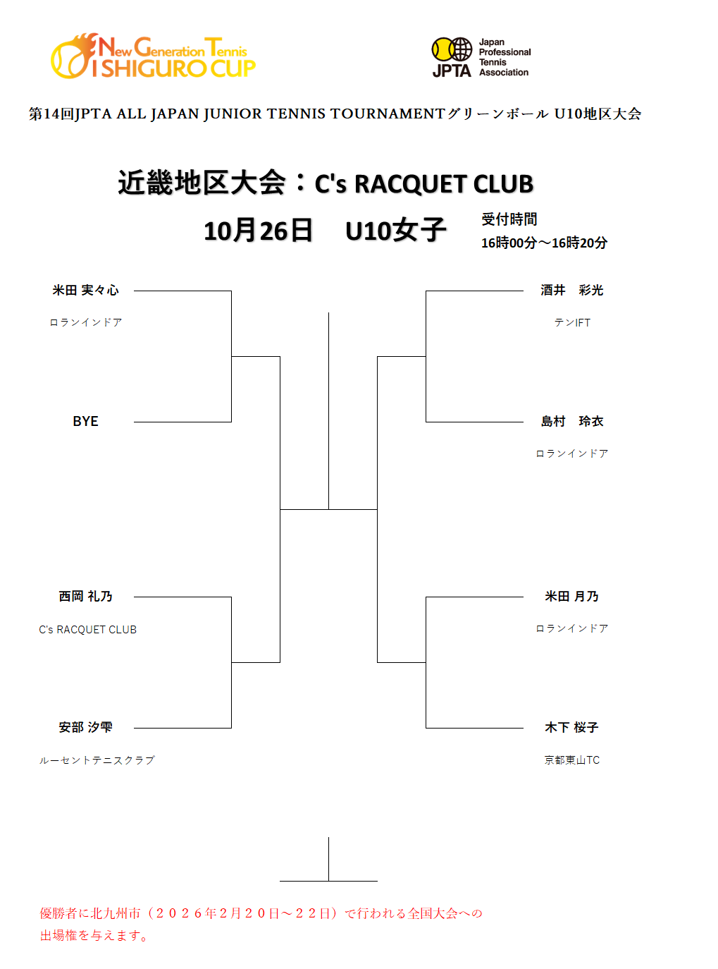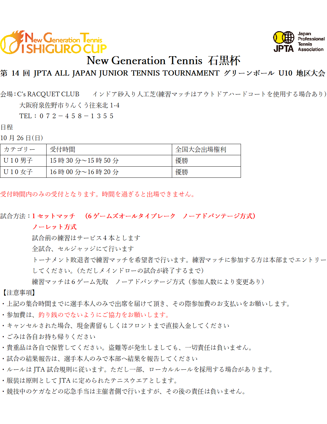 第14回JPTA ALL JAPAN JUNIOR TENNIS TOURNAMENTグリーンボールU10地区大会ドロー及注意事項