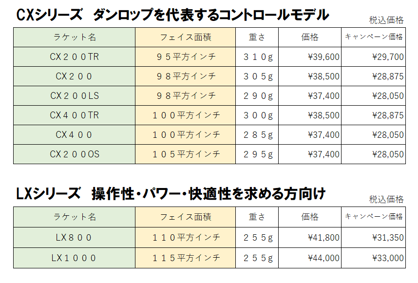 【ダンロップ】ラケット25%OFF・ガットプレゼント・ガット張り代無料