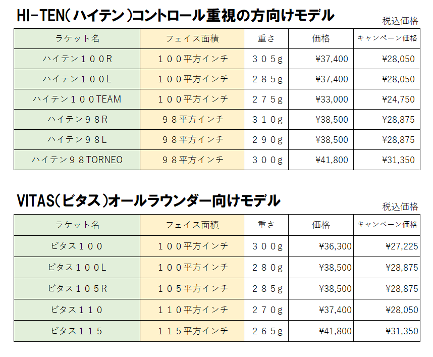 試打ラケットはキャンペーン期間中限定となっておりますので、是非この機会にお試しください!