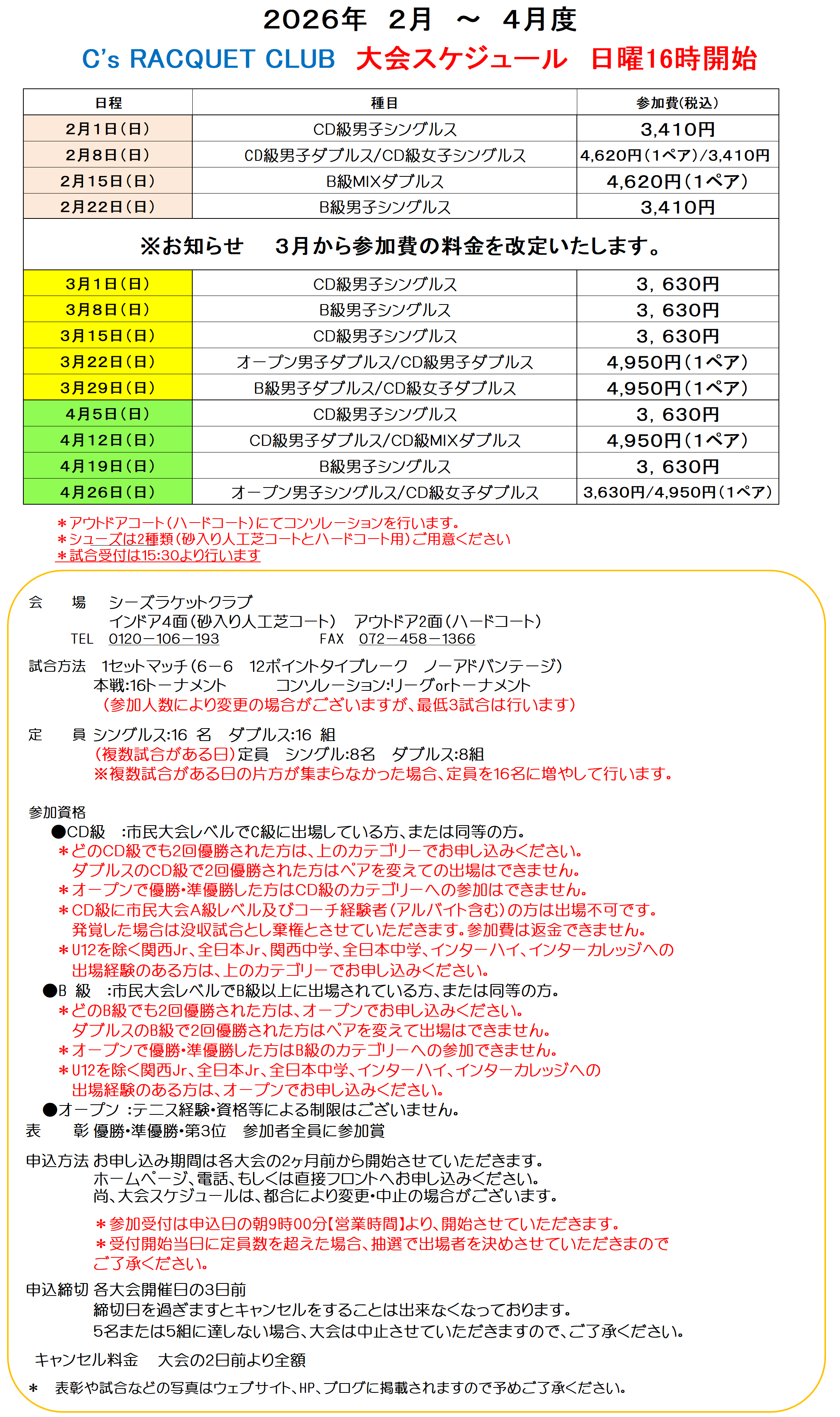 2月~4月大会スケジュール