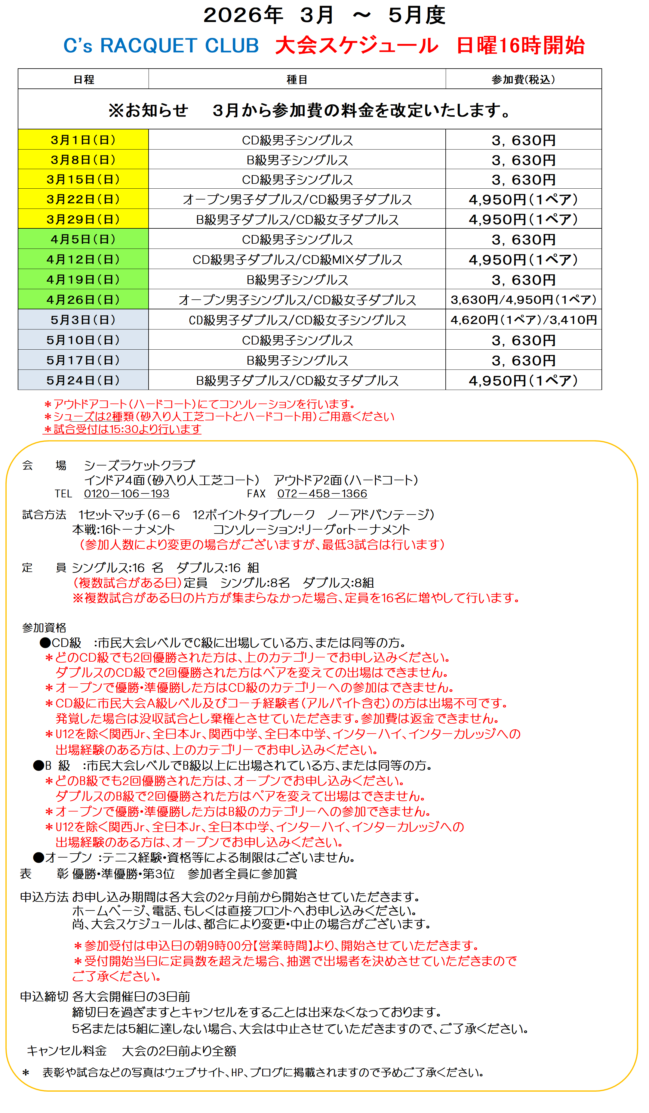 2月~4月大会スケジュール