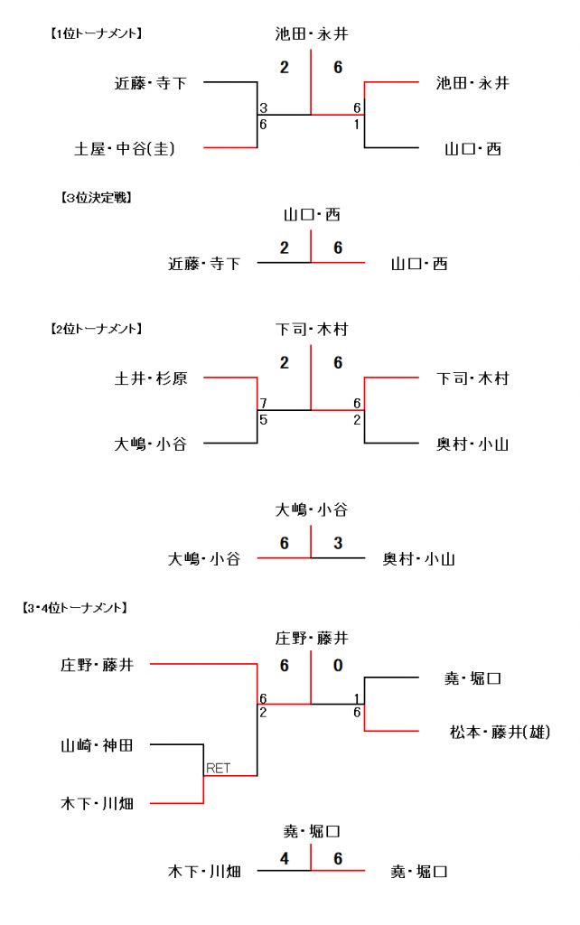 | 9 | 池田・永井 | 6-0 | 6-2 | 2-0 | 1 | ||