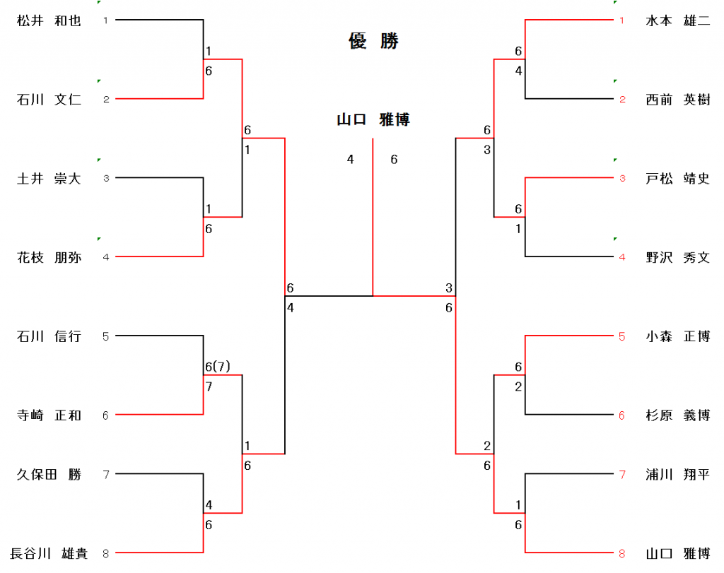 | 松井和也 | 7-5 | 6-3 | 3-6 | 2-1 | 2 | |